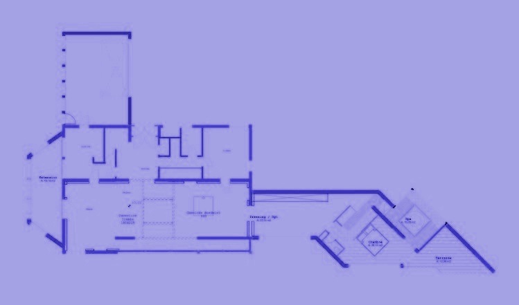 La maison existante fut de ce fait totalement restructurée: Extension de la cuisine par un bow-window réalisé en thermopierre, optimisation de l’espace séjour, création d’une verrière illuminant le séjour et restructuration du plancher d’étage en mezzanine, création de deux grandes chambres enfants et d’une salle de bains, isolation en fibre de bois de la toiture par l’extérieur selon la technique du Sarking.